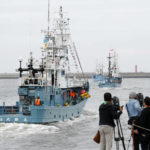 As the boats left port, whalers, their families and local officials in two major whaling towns, Shimonoseki in southwestern Japan, which is Prime Minister Shinzo Abe’s electoral constituency, and Kushiro in the north, celebrated the fresh start, hoping for a safe return and a good harvest.