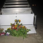 A handwritten note in purple ink was left with flowers Monday night at the base of a lifeguard stand at the beach.
