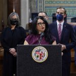 Her opponent, billionaire developer Rick Caruso, said it was a “heartbreaking day for our proud, diverse city,” and he called for all three involved to resign from the council.