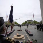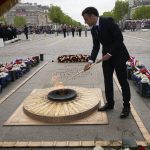 PARIS — French President Emmanuel Macron led the traditional ceremony on Paris’ Champs-Elysees Monday, commemorating the day that marked the end of World War II in Europe in 1945.