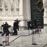 Before the gunfire began, the concert featured members of the cathedral choir standing far apart on the stone steps wearing masks because of the coronavirus pandemic.