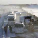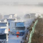 About 200 people were stranded in the pileup, which forced the closure of the Tohoku Expressway in Miyagi prefecture, the Fire and Disaster Management Agency said.