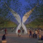 LAS VEGAS — A series of white angel wings rise up from the earth bathed in a warm glow of light, their sweeping forms creating a long covered pathway surrounded by trees in a possible centerpiece for the memorial to modern America’s deadliest mass shooting.