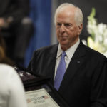 Local and federal officials joined the two-hour ceremony in Pinole, California, a San Francisco Bay Area city, at the high school where Underwood was a star baseball player in the 1980s. Wearing face masks, mourners packed into the school’s theater, where social distancing was mostly ignored, and paid tribute to Underwood, whose body lay in a blue casket on a gold stand.