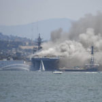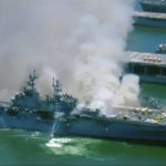The cause of the fire was under investigation. It wasn’t immediately known where on the 840-foot amphibious assault vessel the blast and the fire occurred.