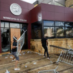 Protesters marched more than 2 miles Tuesday to the police precinct in that part of the city, with some damaging property and skirmishing with officers in riot gear who fired tear gas. The Star Tribune reported more conflict Wednesday night at the same precinct, with some protesters throwing rocks and bottles at police, who responded with rubber bullets and tear gas. The newspaper also reported looting at a Target store across the street from the station.