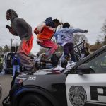 Demonstrators began to gather shortly after the shooting, with some jumping atop police cars. Marchers also descended on the city’s police headquarters, throwing rocks and other objects. About 20 businesses were broken into at the city’s Shingle Creek shopping center, authorities said.