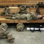 A loading ramp at Fort Bragg was filled Saturday morning with combat gear and restless soldiers. Some tried to grab a last-minute nap on wooden benches. Reporters saw others filing onto buses.
