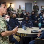 He told the sailors that when missiles start flying and “we start dropping bombs on people, nobody’s going to care who their shipmate is and what color, race, gender, creed that they are.”