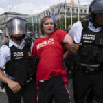 Police said they used pepper spray after some protesters became “violent” and “failed to obey” orders to move back from the police line.