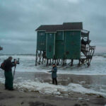 “The waves are crashing really hard into the houses and the dunes, and it’s all eroding,” said Robert Splawn, who was watching on the beach.