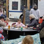 Kalai and Christine Balutski of Pinebluff sat under a heater Monday morning drinking warm beverages at the Red’s Corner food truck lot in Southern Pines. The couple has been without power since 7 p.m. Saturday and said they have been driving to restaurants in the next county over to eat warm meals and watch football while they wait for updates.