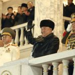The Korean Central News Agency on Friday released photos of Kim wearing a black fur hat and leather trench coat, smiling widely and gesturing from a podium as thousands of troops and civilian spectators filled Kim Il Sung Square, named after his grandfather and North Korea’s founder.