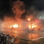 Flames and smoke billowed from the lower floors of the 13-story building as firefighters tried to douse the blaze from the street and aerial platforms in the city of Kaohsiung. A fire department statement described the fire, which started about 3 a.m., as “extremely fierce” and said several floors had been destroyed.