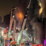 After daybreak, firefighters could be seen spraying water into the middle floors of the still smoldering building from high aerial platforms. One woman, who was not identified, said on Taiwanese TV that her 60-to-70 year old parents were still inside.