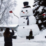 The deluge of snowfall this year prompted one Anchorage homeowner to erect a three-tiered snowman standing over 20-feet- (6-meters-) tall. Snowzilla, as it’s named, has drawn people to snap photos.