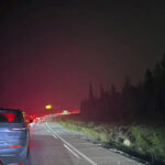 Images shared on social media showed long lines of vehicles, their headlights glowing, inching through swirling tendrils of smoke.
