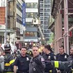 In video he shot from across the street, someone off-camera yells, “Guard! 911! 911! There’s a building collapsing on Ann Street,” followed by the sound of something crumpling. About 45 seconds later, two women run out, saying the building fell while they were inside it. A man stands on a fire escape as bystanders try to figure out how to help him get down. He eventually did, Scott said.