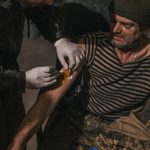 Squeezed against a concrete wall in heavy combat boots and camouflage fatigues, he was surely uncomfortable — but too engrossed to care. Or to notice the photographer hovering to his right, immortalizing the moment inside this last bastion of Ukrainian resistance, the pulverized Azovstal steel mill.