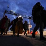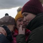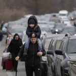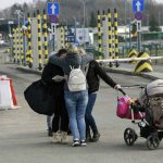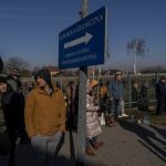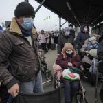 As a seemingly endless column of cars lined up to cross into Moldova at the Mayaky-Udobne border point, some opted to walk alongside cars pulling luggage. Others walked toward borders bundled in heavy winter coats, gloves, warm hats — some with dogs in tow, others pulling baby strollers piled with bags of belongings.