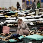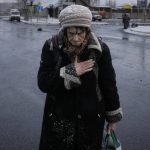 Photographs taken by Associated Press photographers capture just how difficult and emotionally painful the journey has been: the sorrow of a woman who buries her face in her hands as she sits on a cot in a school gymnasium-turned refugee shelter in Przemysl, Poland; the grimace of an elderly, snow-covered woman in a wheelchair who clutches a pink pillow in her lap as she is pushed along a road after being evacuated from the Ukrainian city of Irpin; a recent evacuee from Irpin who pauses on a rain and snow-saturated street, places a hand over her heart and stares down at the cold, wet pavement.