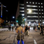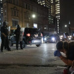 Officers, many in riot gear, confronted the demonstrators and formed lines across streets during the demonstration. But by midnight, the crowd had thinned considerably as police shot canisters of gas toward the protesters.