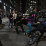 As protesters blocked traffic in Chicago, some threw bottles and other objects at police vehicles and shattered the windows of downtown businesses.