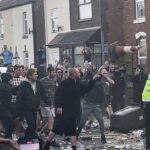 Police said the violent crowd was believed to be supporters of the English Defence League, a far-right group, and the unrest was inspired by rumors about the identity of the teenage suspect arrested on suspicion of murder and attempted murder.