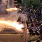 As night fell, one group that had blocked a road near the Chinese government’s liaison office began to move forward. The police issued warnings, and protesters were seen throwing eggs at them. Officers fired tear gas to halt the advance.