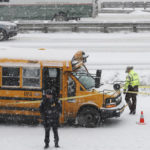 MINNEAPOLIS — Authorities say a school bus driver was wounded in a shooting that followed a crash with another vehicle on a snowy interstate near downtown Minneapolis.