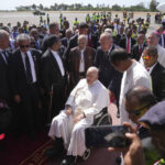 “Viva el Papa!” they shouted as he passed by. The 87-year-old Francis seemed to relish the greeting, smiling broadly from the open-backed pickup truck and waving as he passed by billboard after billboard featuring his image and words of welcome.