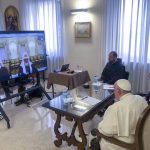 At times, Francis’ words and gestures seem contradictory: One day he sits down for a videoconference with Kirill that is prominently featured on the website of the Russian Orthodox Church with a statement saying both sides had expressed hope for a “just peace.” Three weeks later, he kisses a battered Ukrainian flag brought to him from Bucha, where Ukrainian civilians were found shot to death with their hands bound.