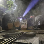 Protesters remained in the streets past 2:30 a.m., forming lines across intersections and holding makeshift shields, as police patrolled and closed blocks abutting the area. Multiple arrests were made, but it wasn’t immediately clear how many.