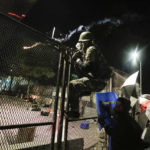 As some protesters attempted to cut the fence using power tools, streams of pepper spray were spewed at the crowd.