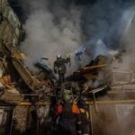 A five-story building in the northern city of Sumy was struck by a drone launched from Russia overnight and 10 people were rescued from the rubble, including eight who sustained injuries, according to the regional administration.
