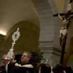 Sheathed in an ornate case, cheerful crowds greeted the relic with much fanfare before it entered the Franciscan Church of St. Catherine next to the Church of the Nativity, the West Bank holy site where tradition says Jesus was born.