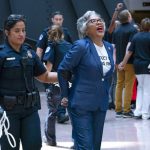 Photos and video showed an officer placing Beatty in zip ties and escorting her out of the building. Capitol police said they arrested nine people for “demonstrating in a prohibited area” and transported them to headquarters for processing.