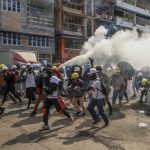 Security forces have also arrested hundreds of people at protests, including journalists. On Saturday, at least eight journalists, including Thein Zaw of the Associated Press, were detained. A video shows he had moved out of the way as police charged down a street at protesters, but then was seized by police officers, who handcuffed him and held him briefly in a chokehold before marching him away.