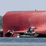 On Monday morning, rescuers landed on the side of the Golden Ray and rappelled down the hull. Heflin, who was coordinating the search, said they found three men in a room close to the propeller shaft, near the bottom of the stern. Responders began drilling, starting with a 3-inch hole. Coast Guard officials brought the ship’s chief engineer, who was rescued Sunday, out to the ship to translate, and found the three men were “on board and OK,” as Heflin put it.