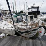 At a downtown marina, at least 30 sailboats, fishing boats and other vessels were found clumped together in a mass of fiberglass hulls and broken docks. Some boats rested atop sunken ones. The hurricane also drove two large ferry boats into a concrete seawall and left them grounded. The boats had been purchased with BP oil spill money.