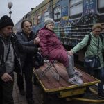 Walking gingerly toward an evacuation train, 79-year-old Liudmyla Biloshysta said she decided to leave and join her children in Kyiv because she feared conditions in Kherson would worsen.