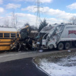 A spokeswoman for Rumpke Waste & Recycling told the Cincinnati Enquirer that the school bus struck a Rumpke residential truck. She said the garbage truck driver was not inside the vehicle when the collision occurred, but was injured by crash debris.