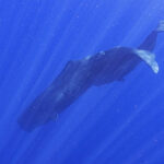 Like many whales and dolphins, sperm whales are highly social mammals and communicate by squeezing air through their respiratory systems to make strings of rapid clicks that can sound like an extremely loud zipper underwater. The clicks are also used as a form of echolocation to help them track their prey.