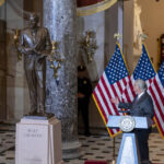 Graham’s likeness, depicting the Charlotte-born minister with his archetypal gesture toward an open Bible in his hand, was revealed inside National Statuary Hall during a gathering attended by House Speaker Mike Johnson, Gov. Roy Cooper, former Vice President Mike Pence, state congressional and legislative members and Graham’s family.