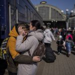Some who were able to flee Mariupol tearfully hugged relatives as they arrived by train Sunday in Lviv, about 1,100 kilometers (680 miles) to the west.