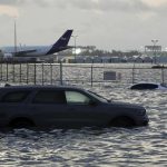 Enough water had drained by early Thursday to allow people to drive on the upper level — or departures — road to pick up waiting passengers. But the entrance to the lower-level, or arrivals, road remained closed.