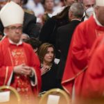 Pelosi attended the morning Mass marking the feasts of St. Peter and St. Paul, during which Francis bestowed the woolen pallium stole on newly consecrated archbishops. She was seated in a VIP diplomatic section of the basilica and received Communion along with the rest of the congregants, according to two people who witnessed the moment.