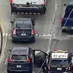 During a standoff that lasted more than an hour, authorities rolled a robot up to the open driver’s door to peer inside the car and later fired two flash-bang grenades into the vehicle.