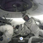 All four on board donned the new spacewalking suits to protect themselves from the harsh vacuum. They launched on Tuesday from Florida, rocketing farther from Earth than anyone since NASA’s moonwalkers. The orbit was reduced by half — to 460 miles (740 kilometers) — for the spacewalk.