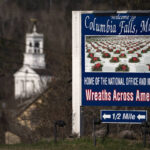 It has made this corner of the world synonymous with patriotic fervor. Motorists entering Columbia Falls encounter flags and phrases of the Pledge of Allegiance spaced along U.S. 1. A welcome proclaims, “Columbia Falls, Home to Wreaths Across America.”